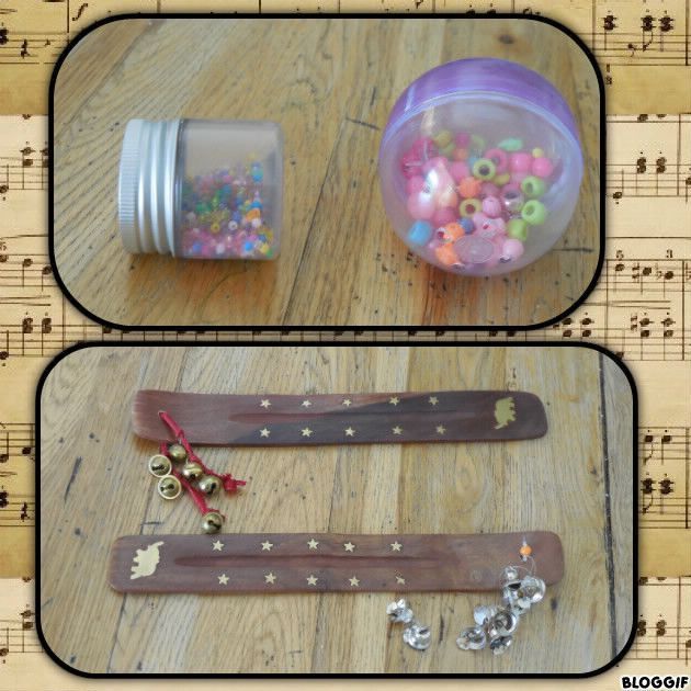 Des clochettes diverses, des supports pour encens, des boules ou flacons plastiques transparents, des perles et voila de quoi garder le rythme.